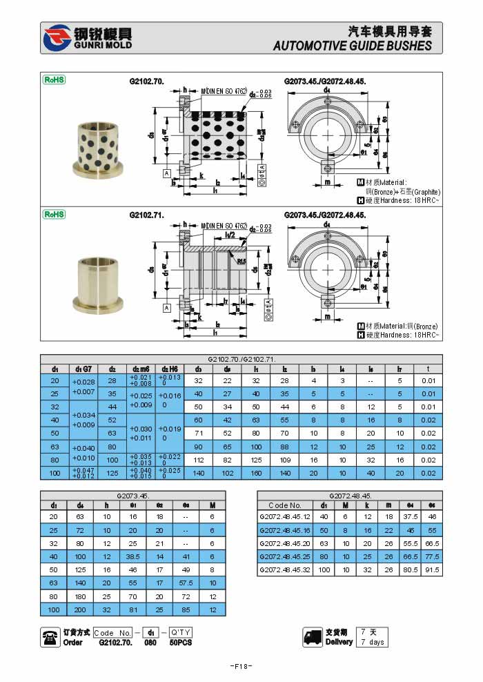 德標汽車模用自潤滑石墨導套G2012.70. G2012.71.