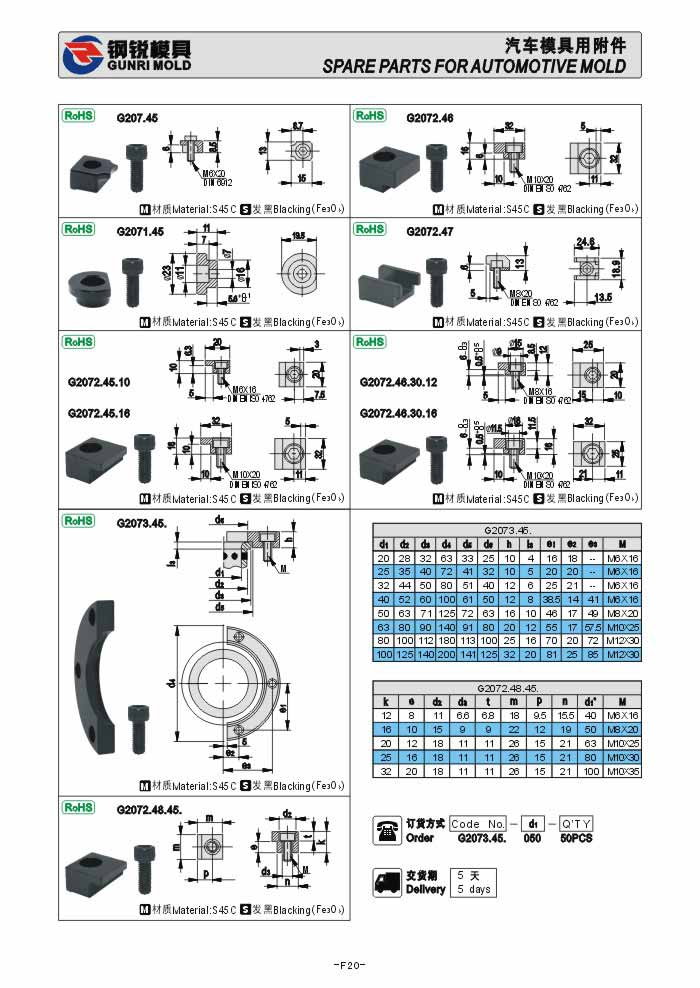 德標汽車模導柱附件G2070.45 G2071.45 G2072.45. G2072.46. G2072.48.