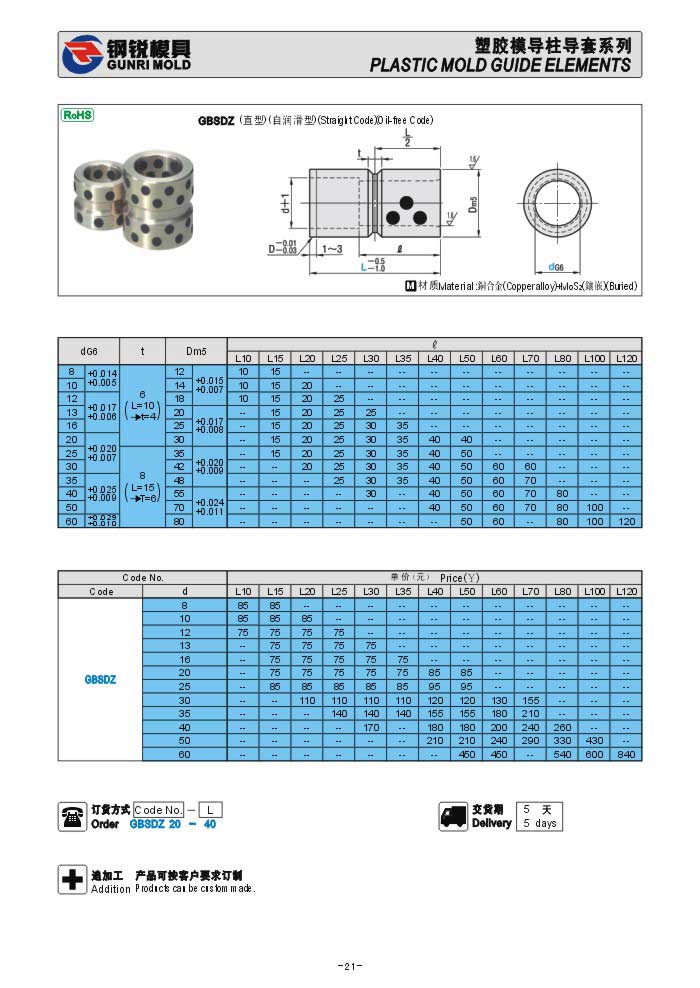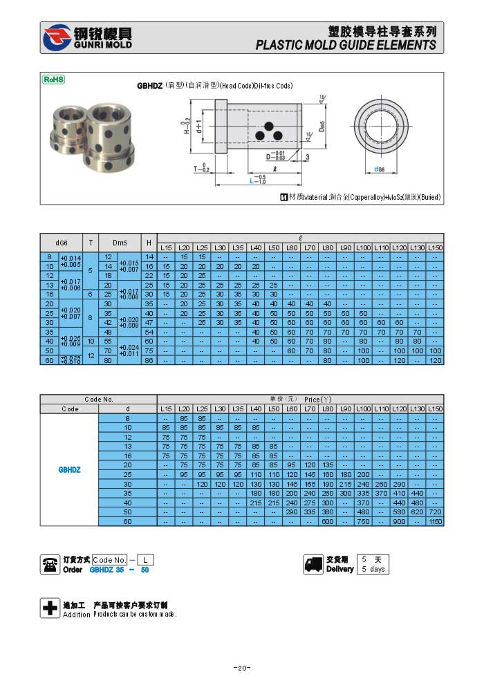 日標塑膠模具導套GBHDZ GBSDZ
