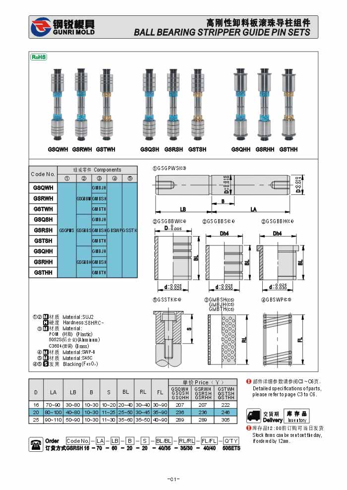高剛性滾珠導柱組件GSQSH GSRSH GSTSH