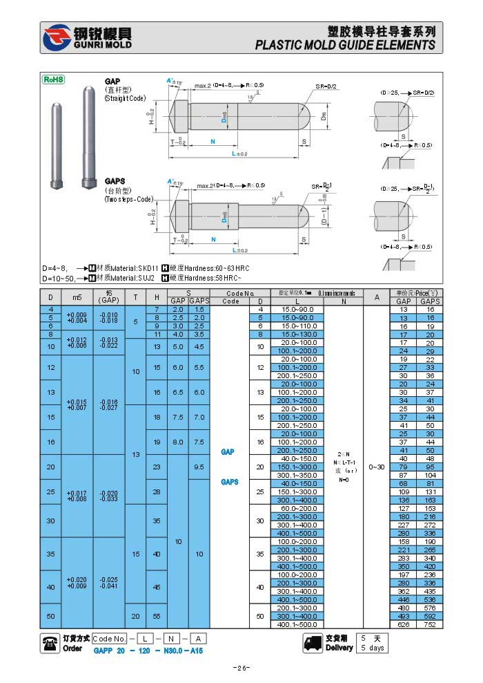 日標(biāo)塑膠模斜導(dǎo)柱GAP GAPS GAPZ GAPZS