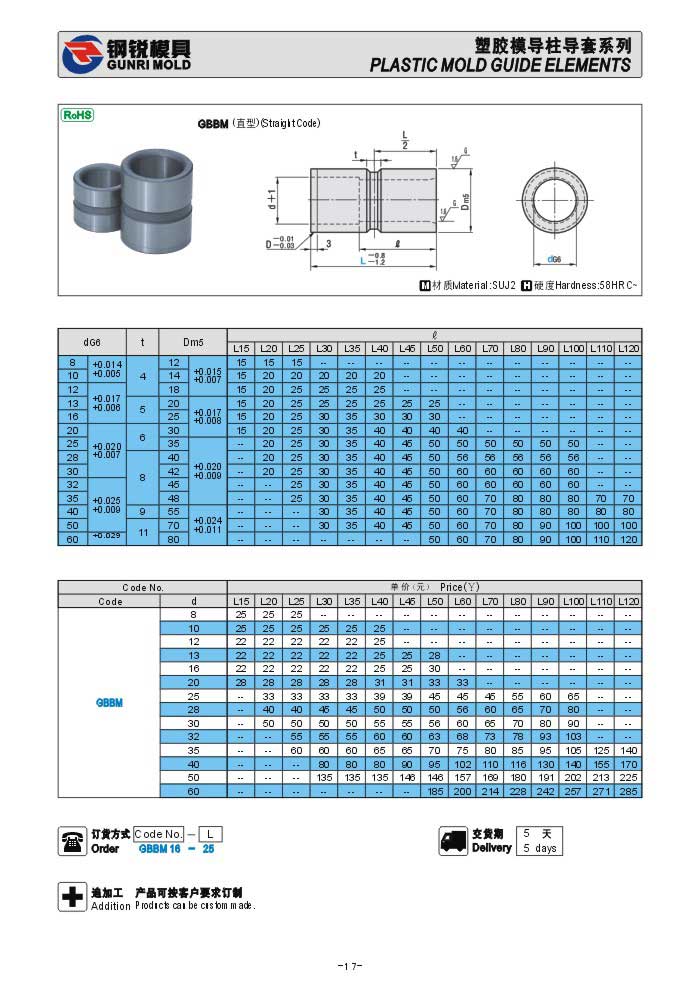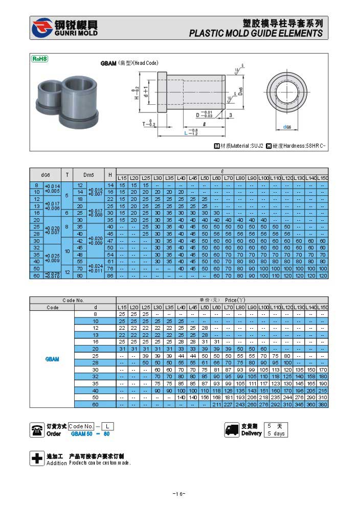 日標塑膠模具導套GBAM GBBM