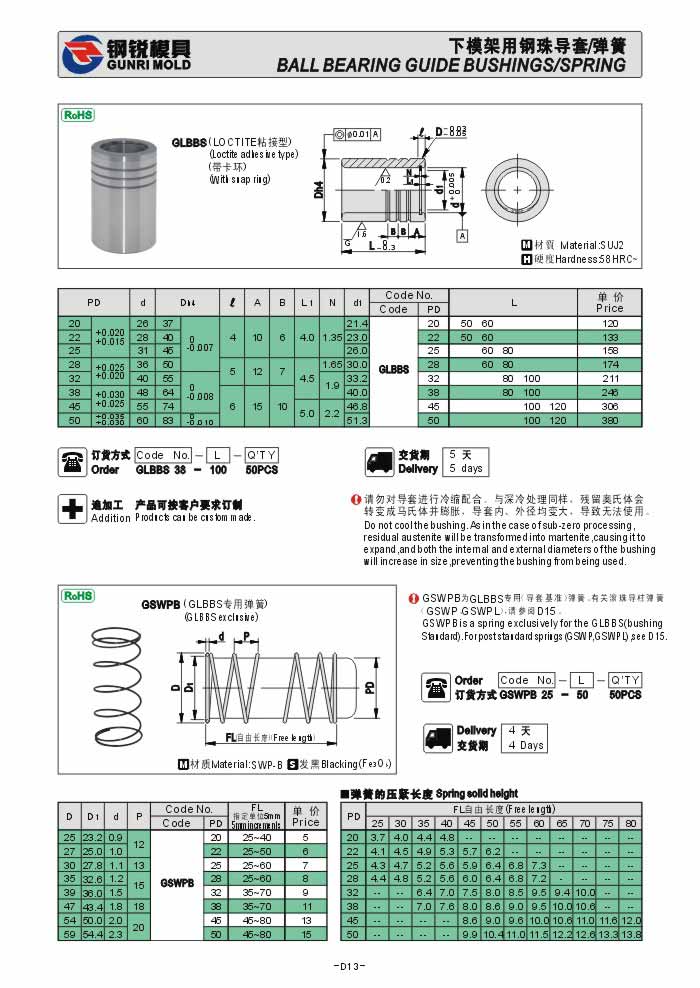 下模架用鋼珠導(dǎo)套、彈簧GLBBS GSWPB