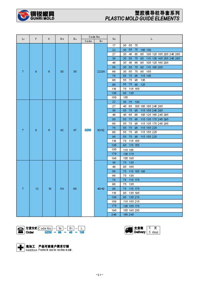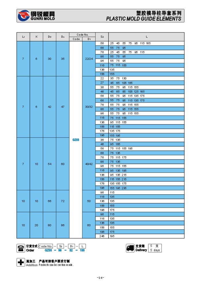 德標塑膠模導柱GZ00 GZ03