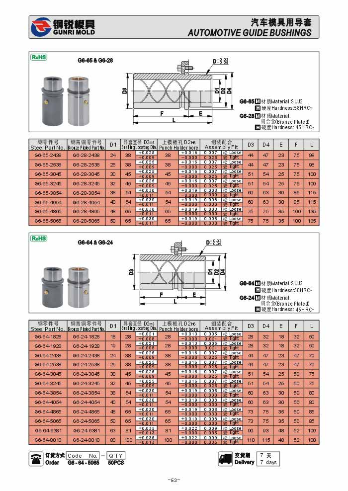 美標汽車模用滑動導套G6-65 G6-28