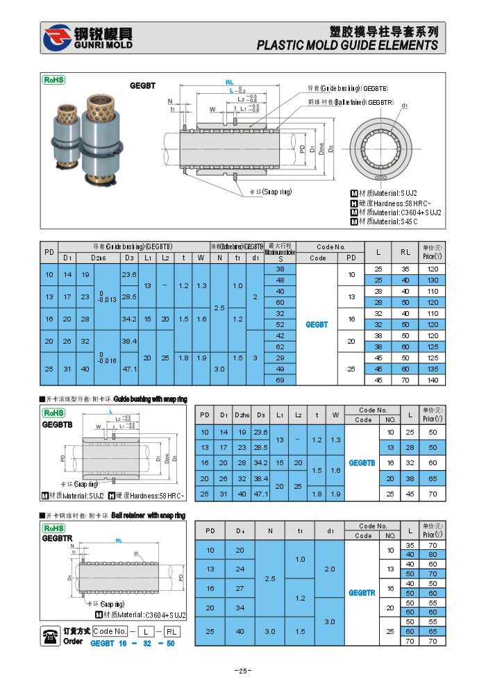日標(biāo)塑膠模滾珠導(dǎo)套組件GEGBT