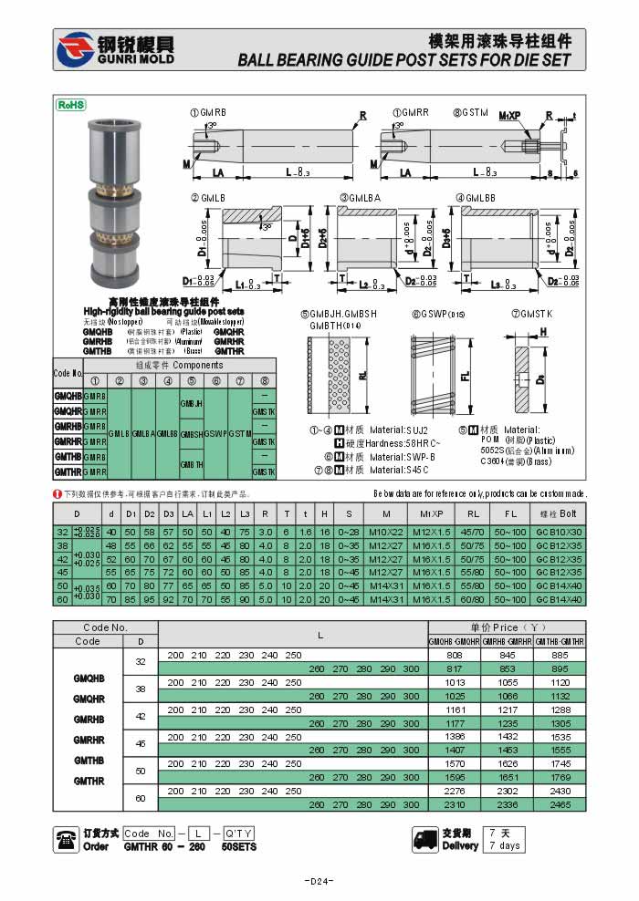 模架用錐度導柱組件GMQHB GMRHB GMTHB GMQHR GMRHR GMTHR