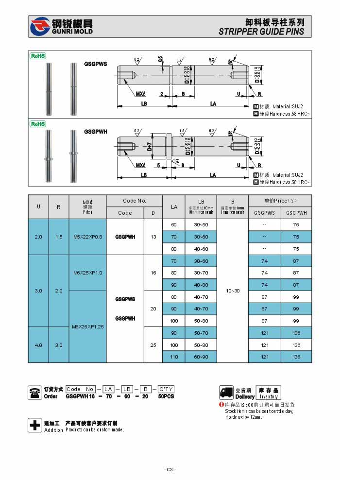 高剛性滾珠導(dǎo)柱GSGPWS GSGPWH